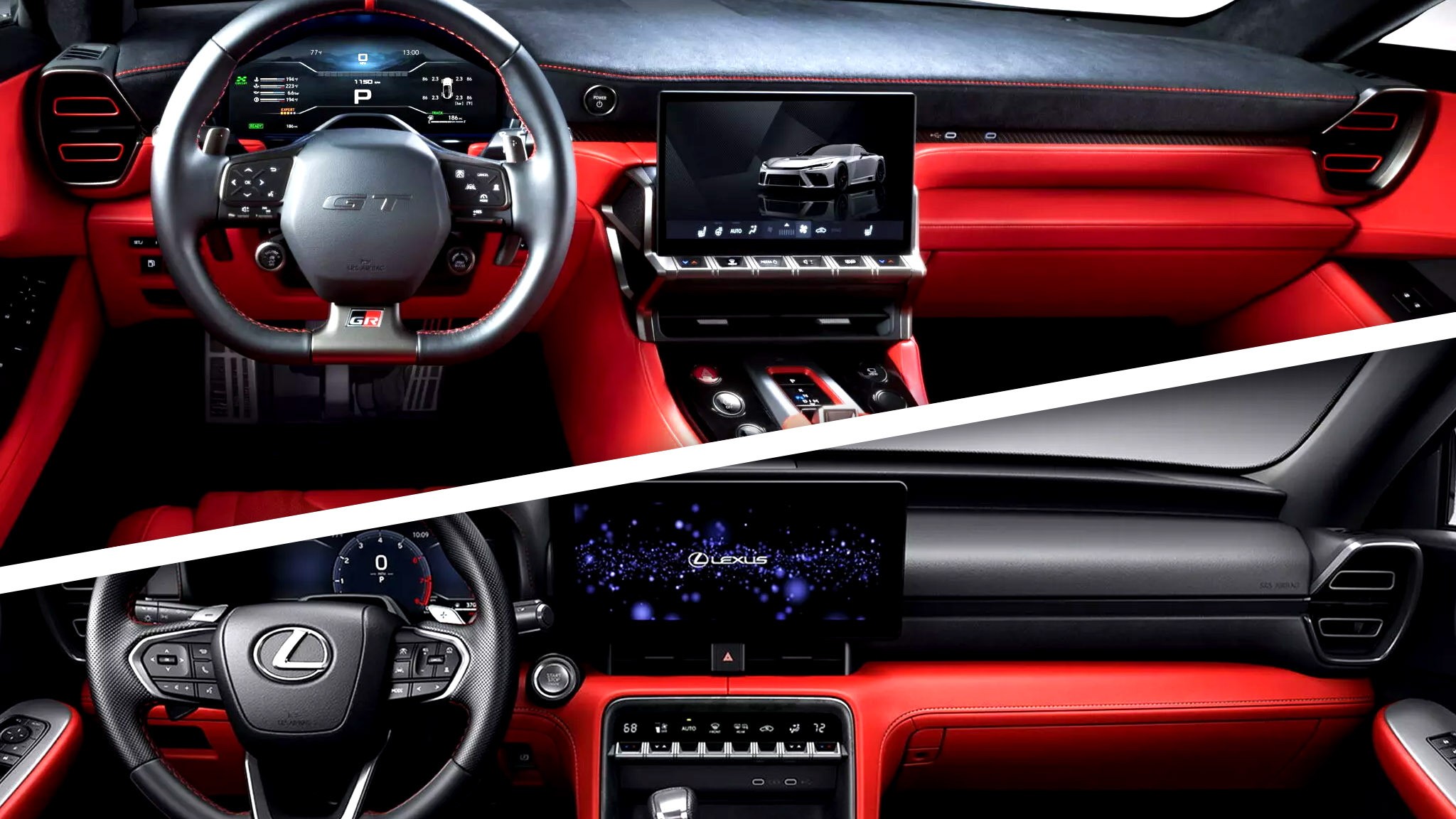 Найбільш помітне перекриття є у внутрішній обробці, особливо в вентиляційних отворах і оббивці. GR GT має вентиляційні отвори, які, здається, безпосередньо запозичені у Lexus IS, моделі, яка отримала численні оновлення з моменту свого дебюту в 2013 році. Відтінки оббивки також разюче схожі на Lexus Radiant Red. У той час як GR GT додає преміальні штрихи, такі як замша та вуглецеве волокно, фундаментальний дизайн деяких компонентів залишається незмінним.